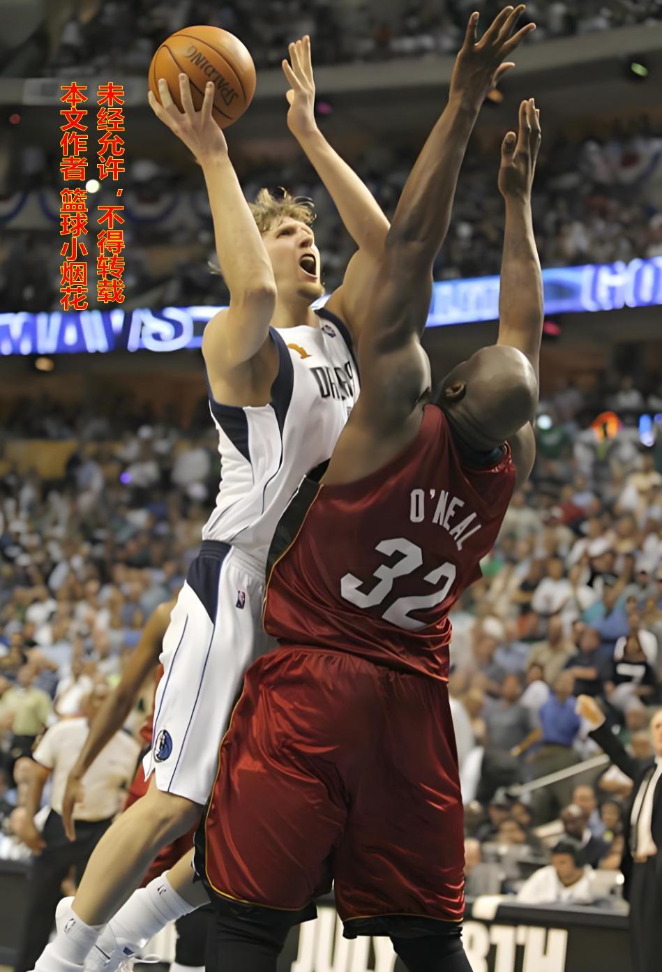 2006-2007赛季,就是在诺维斯基拿到常规赛MVP的前一年,他率领小牛打进了总决赛,结果在先下两城的情况下,被热火绝地翻盘,痛失总冠军,诺维斯基在关键的第四战和第五战,贡献了无比拉胯的表现——